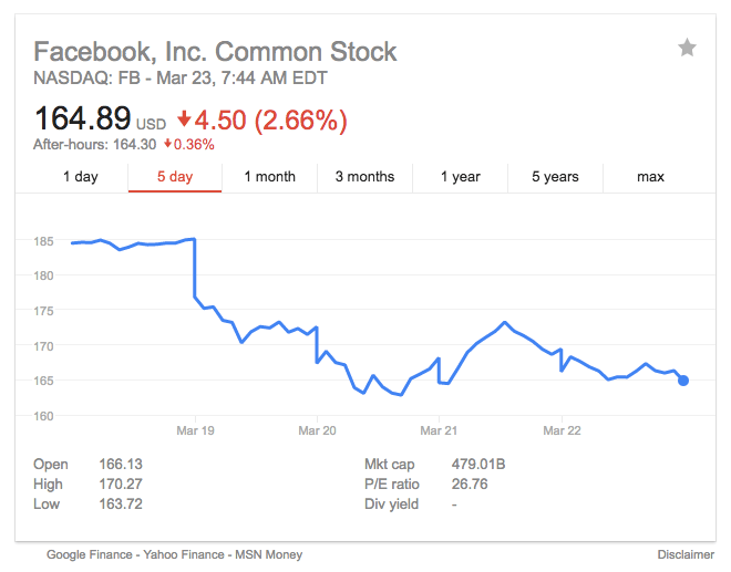 CEO Mark Zuckerberg has also since gone on CNN to apologize. But the scope and scale of the data mishandling, coupled with Facebook’s failure to inform users when it found about the policy breach in 2015 have played very badly with markets and users alike…