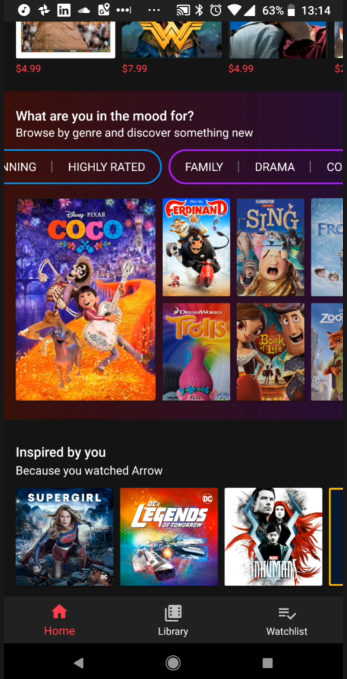 In the updated Google Play Movies & TV app, you’ll now find three tabs in the new bottom navigation bar which will direct you to your Home, Library or your Watchlist. The watchlist is a feature the app recently gained as well, but now it has a much more prominent position.