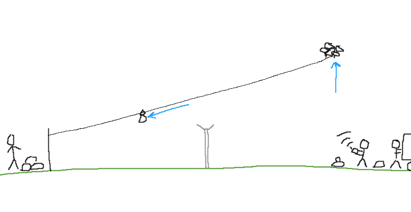 Small packages of 10 or so phones were sent one at a time, and it only took “seconds” to get them over the border. That pretty much rules out flying the drone up and over the border repeatedly — leaving aside that landing a drone in pitch darkness on the other side of a border fence (or across a body of water) would be difficult to do once or twice, let alone dozens of times, the method is also inefficient and risky.