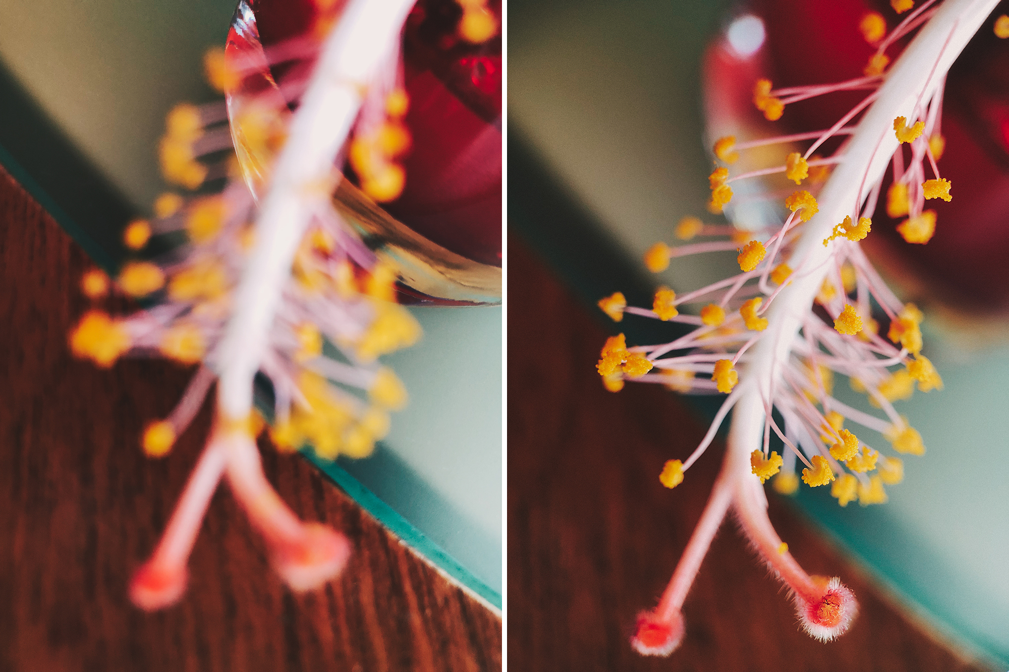 With the macro lens, I was able to capture the tiniest details, from the filaments of a hibiscus flower to its petal veins. The removable diffuser hood softened the light so whites weren’t blown out.