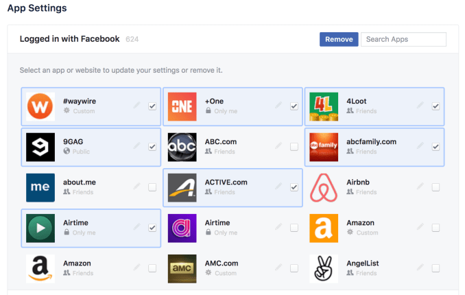 Facebook confirmed the launch to TechCrunch, pointing to its Newsroom and Developer News blog posts from the last few weeks that explained that “We already show people what apps their accounts are connected to and control what data they’ve permitted those apps to use. In the coming month, we’re going to make these choices more prominent and easier to manage.” Now we know what “easier” looks like. A Facebook spokesperson told us “we have more to do and will be sharing more when we can.” The updated interface was first spotted by Matt Navarra, who had previously called on Facebook to build a bulk removal option.
