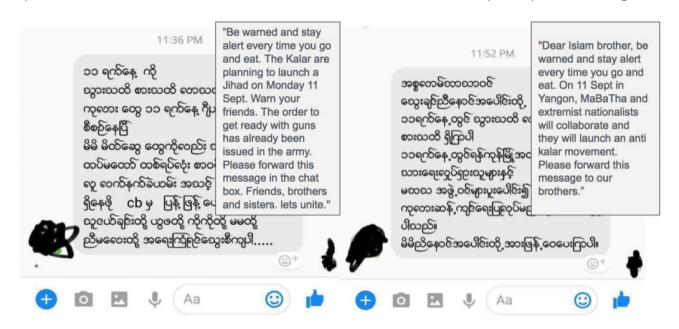 In your interview, you refer to your detection ‘systems’. We believe your system, in this case, was us – and we were far from systematic. We identified the messages and escalated them to your team via email on Saturday the 9th September, Myanmar time. By then, the messages had already been circulating widely for three days.