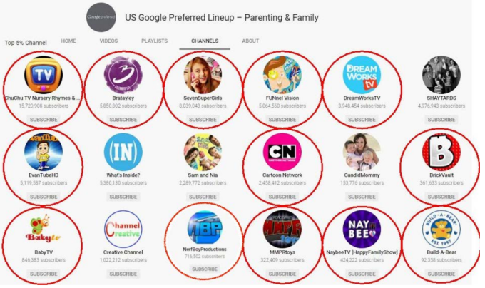 Plus, advertisers can target kids’ programming through the “Parenting and Family” lineup in the Google Preferred ads platform, the complaint states.