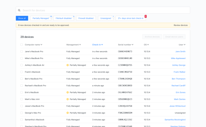 “How do you manage a fleet of Macs and secure them through the internet? We looked around when we were in a build/buy position and saw a lot to be done. We are democratizing what companies like Google and Facebook have with their own [home-grown] internal Mac management tools,” CEO Blum told TechCrunch.
