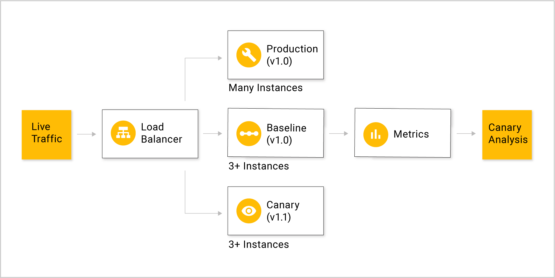 The general idea behind canary analysis is pretty straightforward. Like the name implies, this is an early warning system that is all about prevent major issues when you roll out an update to a service or your infrastructure. As you roll out an update to a subset of new users (or servers, or parts of your network), the canary analysis service checks whether the new system behaves as it should — or at least as well as the old one. At every step, the system performs its checks and ensures that you don’t roll out an upgrade that may pass all of your regular tests but creates issues when thrown into a more complex production system.