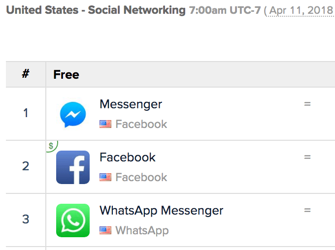 Mark Zuckerberg’s flimsy defense when congress asked about a lack of competition to Facebook has been to cite that the average American uses eight social apps. But that conveniently glosses over the fact that Facebook owns three of the top 10 U.S. iOS apps: #4 Instagram, #6 Messenger, and #8 Facebook according to App Annie. The top 3 apps are games. Facebook is building its Watch video hub to challenge #5 YouTube, and has relentlessly cloned Stories to beat #7 Snapchat. And Facebook also owns #19 WhatsApp. Zoom in to just “social networking apps”, and Facebook owns the entire top 3.