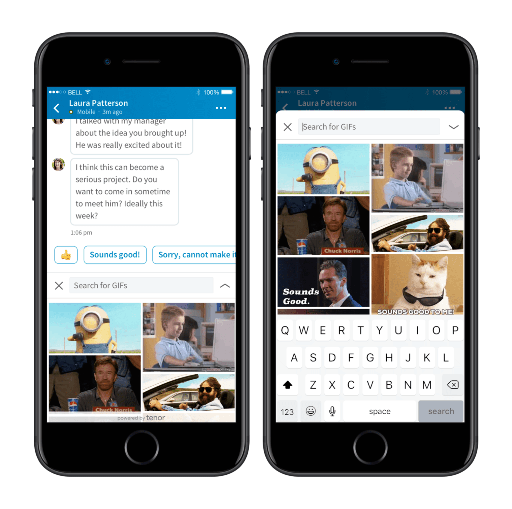 GIFs are increasingly popular in messaging apps, and Tenor is one example of how it’s become almost table stakes for any messenger platform. While LinkedIn is mostly a place where you’d expect to be closing deals and acquiring customers — or searching for a job — it doesn’t really change the core value proposition of what a GIF provides. Companies like Tenor seek to position GIFs as a way to compress more information (or some kind of emotion) into a compact form factor that has very little friction inside a messenger platform.