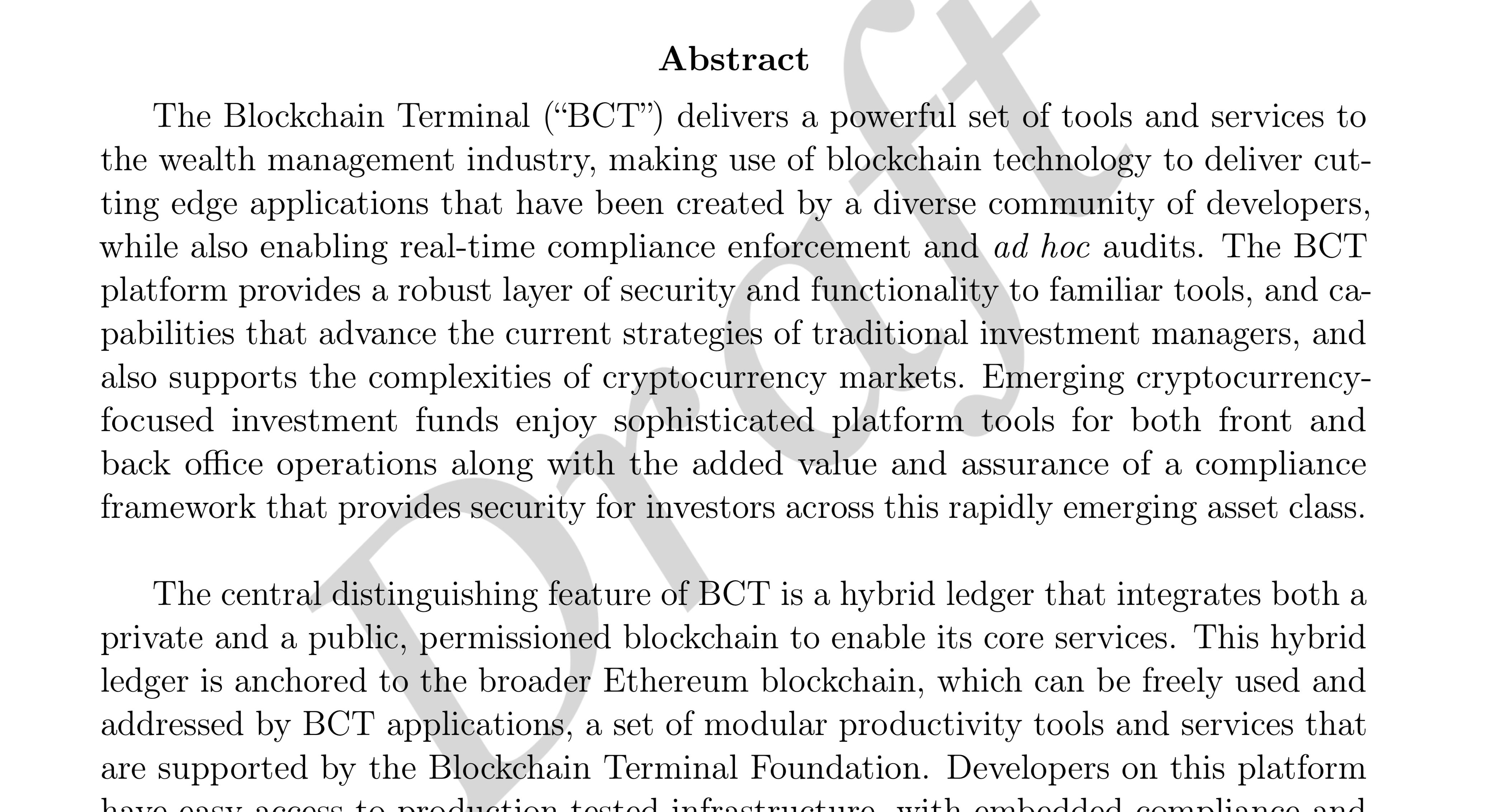 Finally I did the obvious thing: visit the white paper. There we find that the Terminal is being built in conjunction with FactSet, a venerable research company that has seen all the vicissitudes of financial data. In fact, the paper is a tour-de-force on par with the best of the white papers I’ve seen. But we also discover that the white paper is a draft.