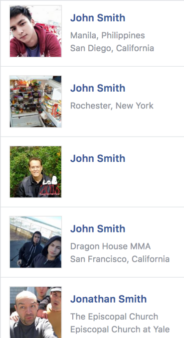 That’s especially problematic if your friends have common names. There are tons of John Smiths on Facebook, so finding him on another social network with just a name will require a lot of sleuthing, or guess-work. Depending on where you live, locating a particular Garcia, Smirnov or Lee could be quite difficult. Facebook even built a short-lived feature called Friendshake to help you friend someone nearby amongst everyone in their overlapping name space.