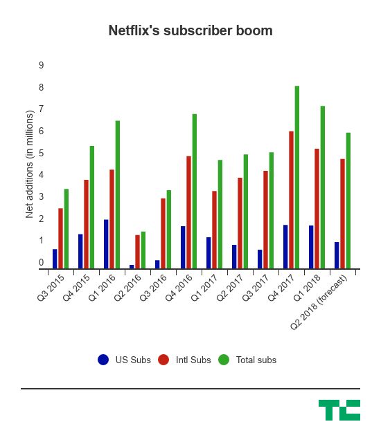 Following Netflix’s last earnings report — which it, as you might expect, included some blowout subscriber numbers — the company rocketed past a market cap of $100 billion. Since then it’s only been an upward trend for Netflix, which prior to its first-quarter report was worth more than $130 billion. Despite increasing spend on original content, that subscriber number is still mostly where it gets its market value because it’s a forward predictor of its revenue.