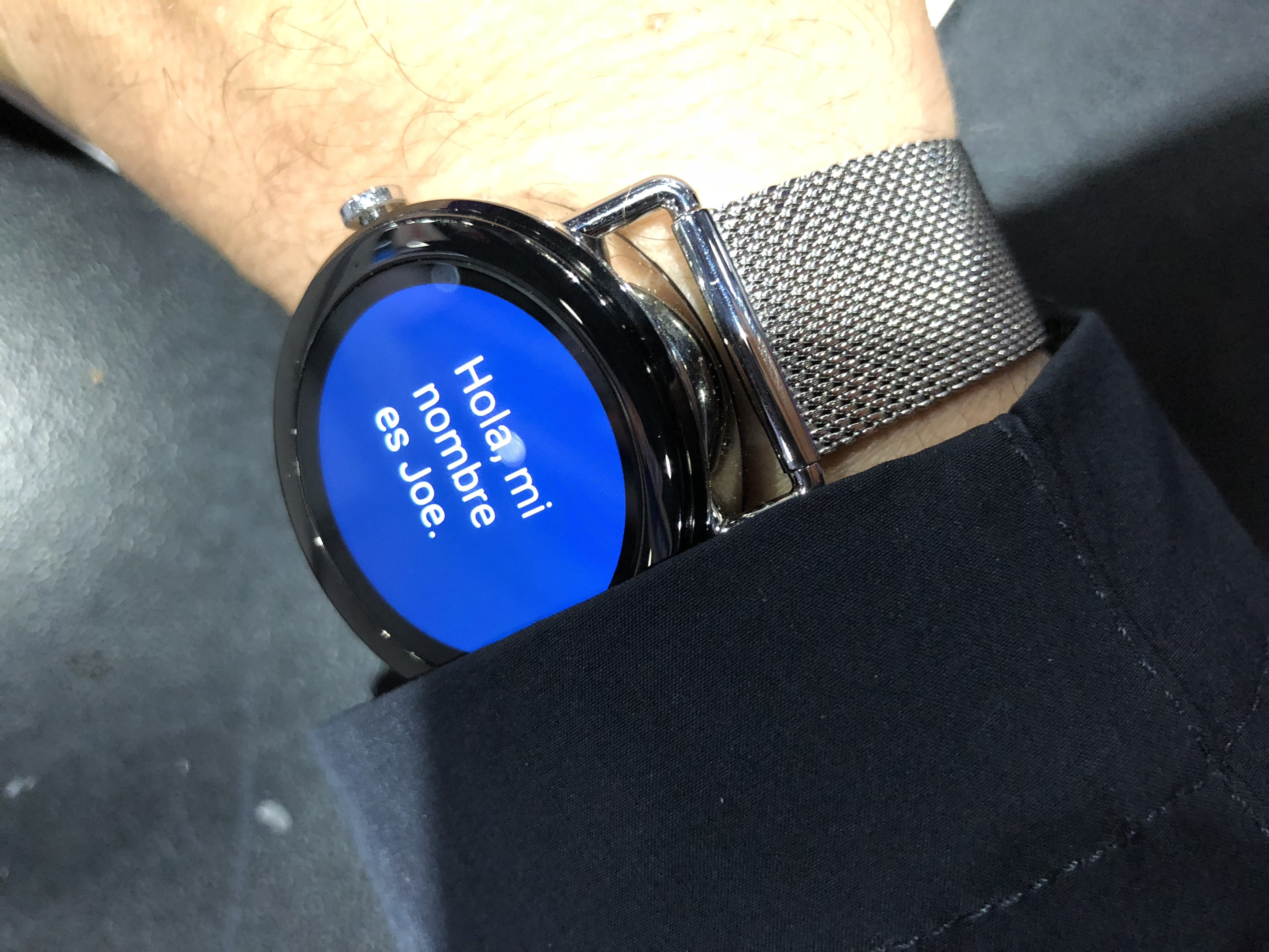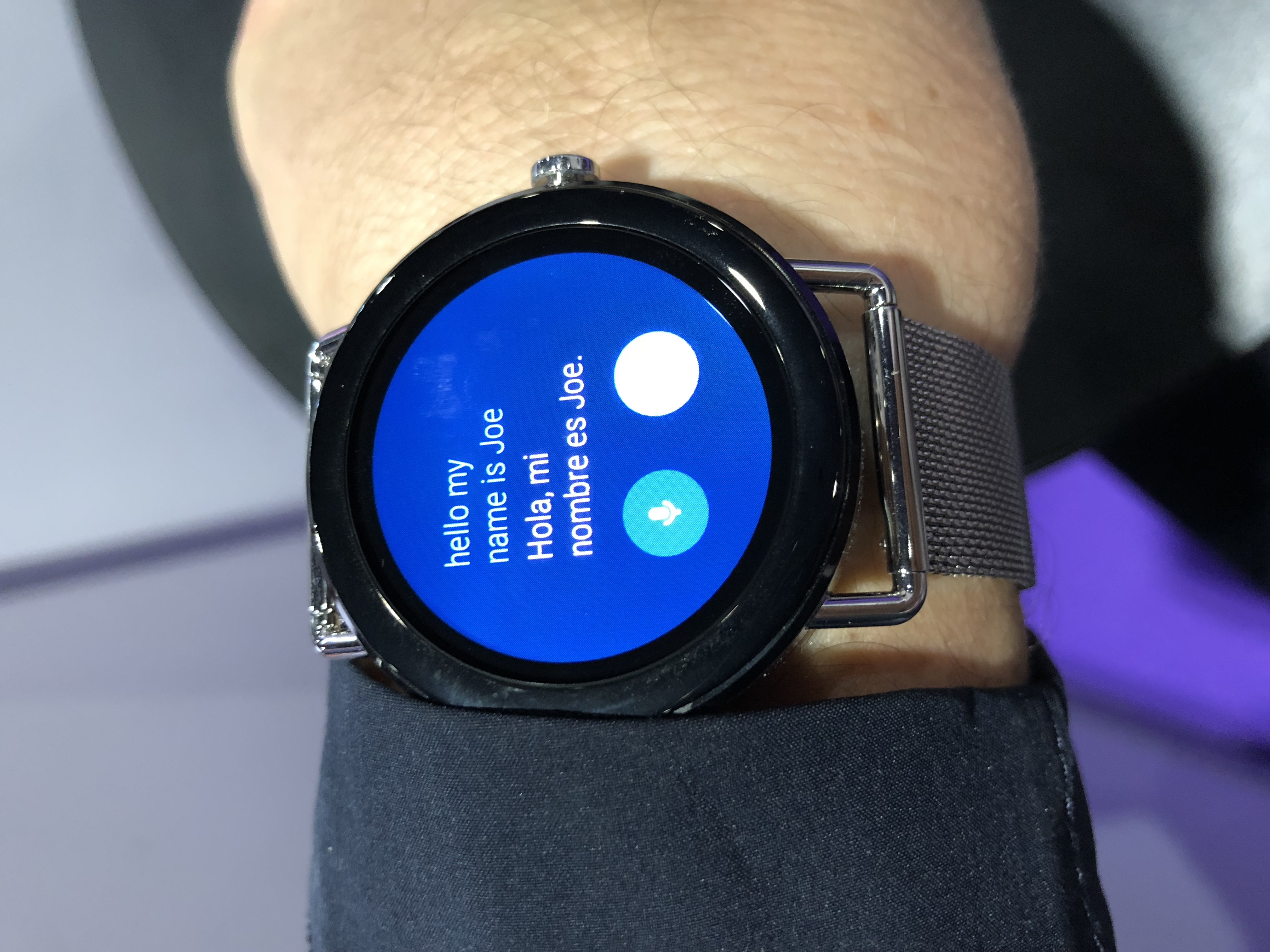 The Falster, which costs $275 and is available now, has a fully round digital OLED face which means you can read the time at all times. When the watch wakes up you can see an ultra bright white on black time-telling color scheme and then tap the crown to jump into the various features including Android Fit and the always clever Translate feature that lets you record a sentence and then show it the person in front of you.