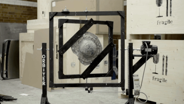 “It’s quite large, so we can’t cast it in one solid piece,” du Preez explained. “It would be too heavy to ship. And it sinks — the material moves too much. So what you do is you make a mold, like a negative of the moon, and you pour the liquid inside it. And while the liquid is setting, you rotate it around, to make sure the inner surface is being coated by resin while it’s drying.”