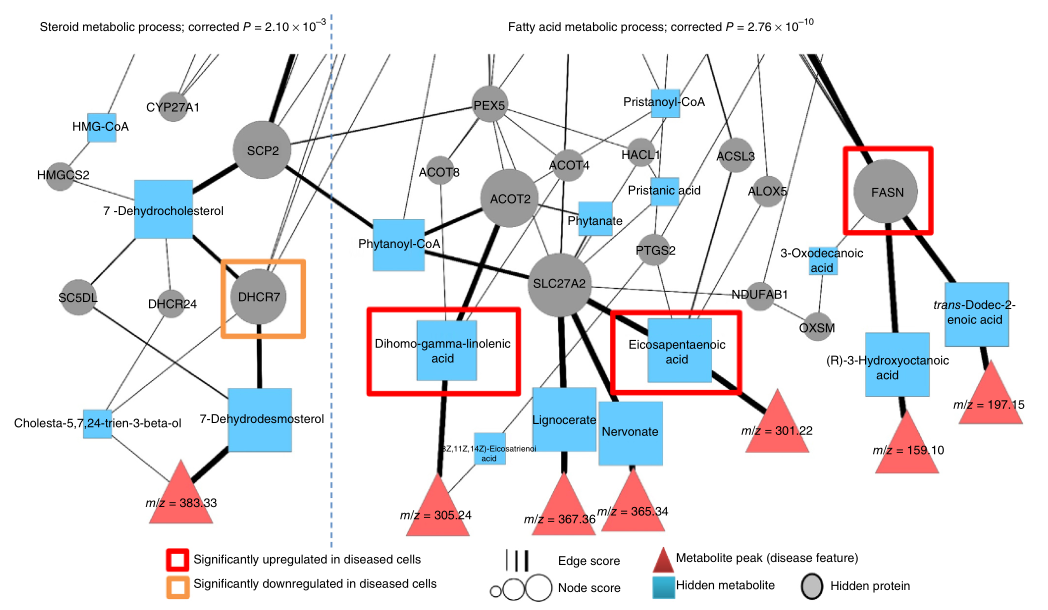 The secret sauce, or one ingredient anyway, is the ability to distinguish metabolites with similar masses (sugars or fats with different molecular configurations but the same number and type of atoms, for instance) and correlate those metabolites with both drug and protein effects and disease outcomes. The metabolome fills in the missing piece between disease and drug without any tests establishing it directly.
