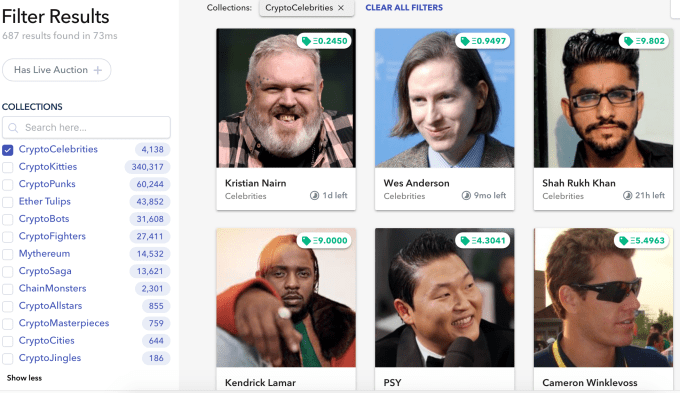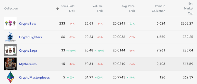 Rare Bits lists more than 500,000 items from a dozen games, including CryptoPunks, Ether Tulips, CryptoBots, CryptoFighters, Mythereum and CryptoCelebrities. Users get the benefit of having all their crypto-collectibles in a single wallet. They can see historical pricing before they buy anything thanks to the transparency of the Ethereum ledger, whether they want to “Buy Now” or win an auction. The collectors can also see related items rather than transacting in a vacuum. One item sold for more than $10,000, and sales in the 5-10ETH range ($555 each today) aren’t uncommon.