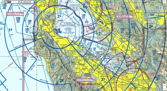 Better technology will however help with navigation. I don’t mean point-to-point, I mean in familiar places. Navigation may seem relatively easy above the San Francisco Bay, a well-known territory full of landmarks. Guess again. That sky may be empty but it is not unoccupied. Instead it is segmented into dozens of complex three-dimensional zones, and woe betide you if you stray into the wrong one.
