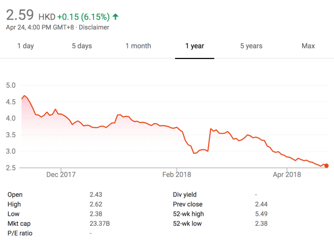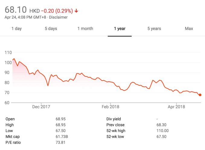 Razer, which is backed by Hong Kong’s richest man Li Ka-Ching among other investors, saw an 18 percent pop on IPO day, but its share price has steadily decreased since then. It is trading up six percent today — after the company bought $100 million-valued payment provider MOL yesterday — but its price of HK$2.59 is down on its initial list price of HK$3.88.