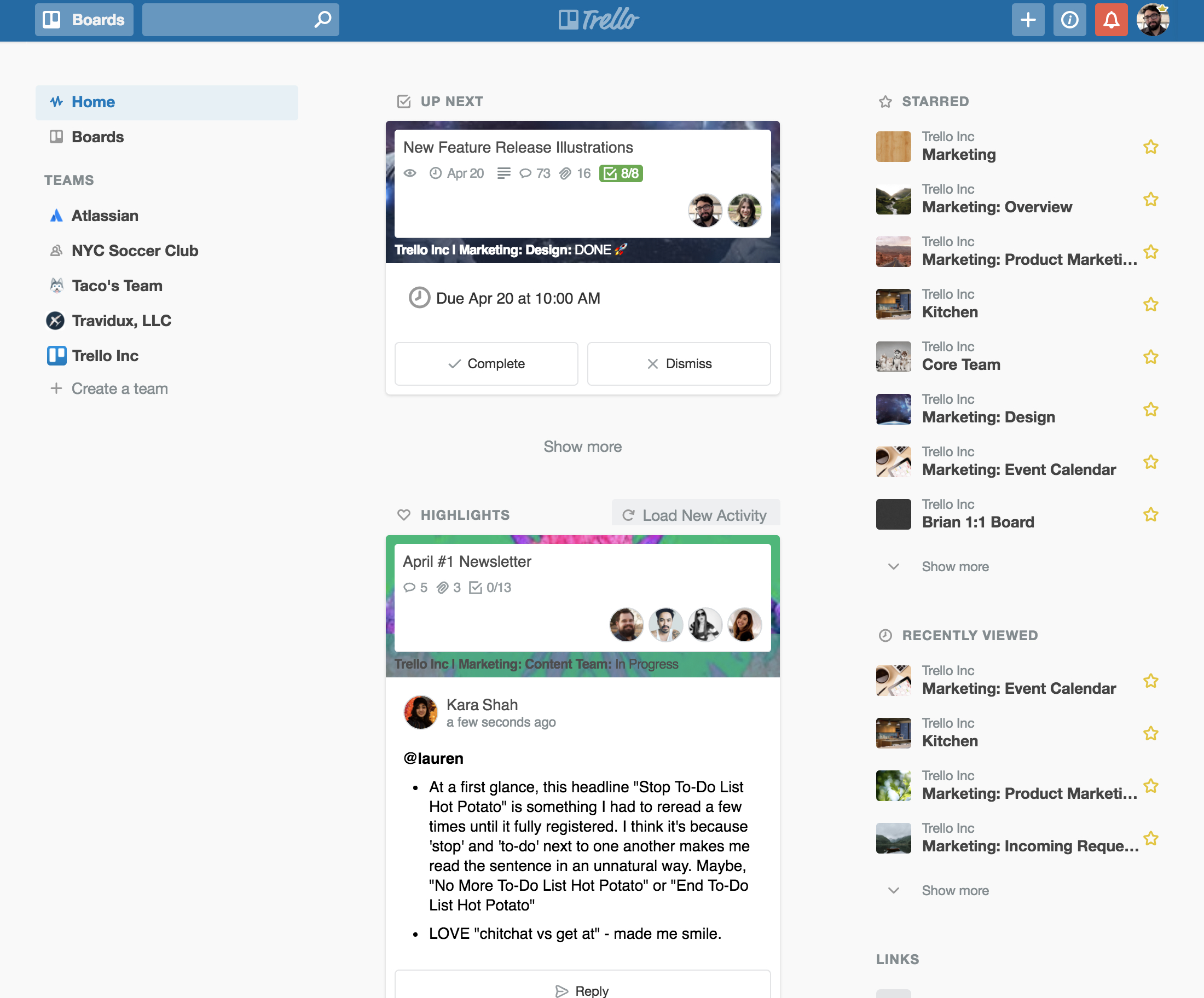 “By displaying a newsfeed of activity from your Trello teams, home surfaces the information you need, when you need it,” the Trello team writes today. “Let the information come to you and browse at your own pace. See what everyone on your team is working on without having to dig through every individual board.”