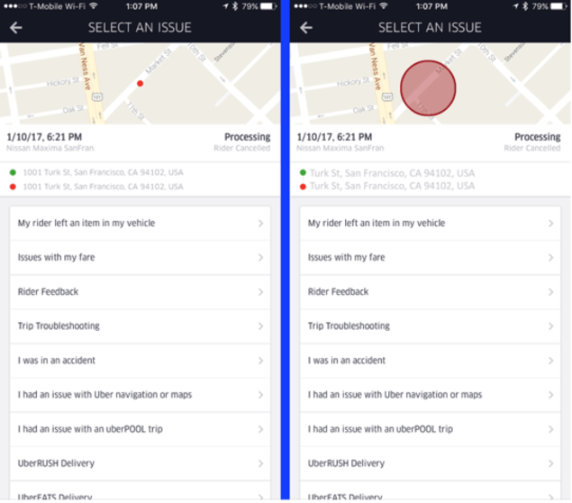 In the current version of the pilot — according to screenshots obtained by Gizmodo — the location of the pin has been expanded into a circle, so it’s indicating a shaded area a few meters around a pick-up or drop-off location.
