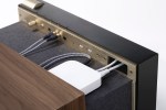 Inside is the amplifier and guts, of course, and in back a drawer hides the many inputs: two 3.5mm jacks, two USB, one USB-C. I’m not sure how many of those you’ll end up using simultaneously, but it’s always nice to have options. Plus Bluetooth, of course. And there’s a spot to attach a wireless charger so you can just set your phone on top of the thing and get a boost.