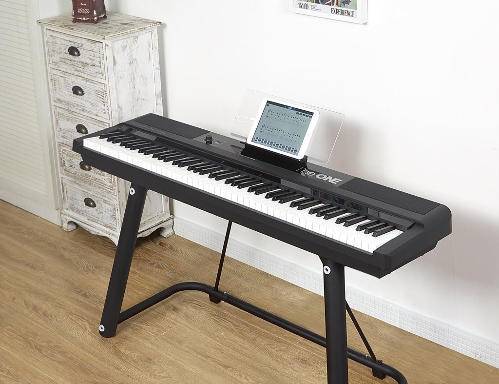 This larger and more complete version of the One Smart Keyboard offers quality workmanship and design. The entire system is surprisingly sparse with nothing but a power button and volume on the front of the keyboard. There is an input for a sustain pedal as well as a few output jacks for headphones and that’s about it. Don’t expect to pick out instruments or pitch shift with this keyboard. Once you fire up the app you have access to teaching exercises and games that let you follow along on the LED-lit keyboard as you run through songs and scales. Finally, you can buy sheet music for $3.99 or so that you can learn to play on the ONE. There is also free sheet music available for those who want to play a little classical.