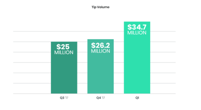It claims to have seen the biggest quarter ever in Streamlabs tipping volume, rising 33 percent to $34.7 million, up from $26.2 million in the prior quarter. (Keep in mind this is tipping that takes place through Streamlabs software – the total tipping volume across platforms will be even higher.)