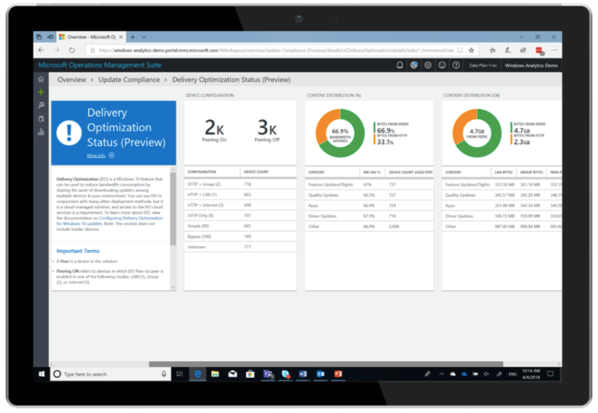 Another part of this update is what Microsoft calls ‘delivery optimization” for updates. With this, a single device can download an update and the distribute it to other Windows 10 devices over the local network. Downloads take a while and eat up a lot of bandwidth, after all. And to monitor those deployments, the Windows Analytics dashboard now includes a tab for keeping tabs on them.