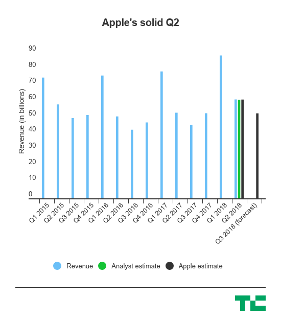 - Q2 iPhone shipments: 52.2 million units sold, compared to Wall Street estimates of 51.9 million iPhones sold.