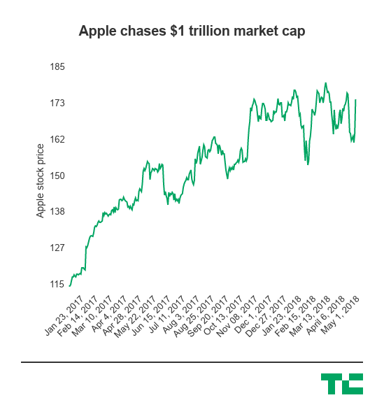 Toward the end of last year, it seemed like Apple was inching closer to being a company with a market cap over $1 trillion. That’s a completely symbolic number, but nonetheless would be a significant milestone for the iPhone maker that looks to figure out what a next-generation smartphone looks like. Apple’s stock has by no means been in a tailspin, but it hasn’t really done anything either as expectations start to drop a bit following the launch of the iPhone X.