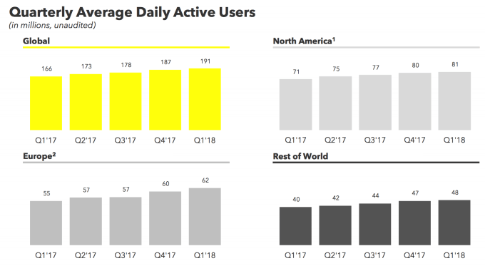 It seems that Snapchat’s sudden growth spurt last quarter was a fluke, with Snap adding just 1 million users in its core North American market this quarter. It’s actually worse than it looks. CEO Evan Spiegel wrote in his prepared remarks that compared to its 191 million users quarterly average, “our March average was lower, but still above our Q4 average.” The idea that Snapchat actually shrank last month should terrify investors.