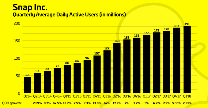 Snapchat face-planted in its Q1 2018 earnings report amidst a rocky redesign and sustained competition from Facebook, unable to keep up its comeback from last quarter. Snapchat reached only 191 million daily active users, up from 187 million, with its growth rate sinking to 2.13 percent — its slowest ever, compared to 5.05 percent in Q4 and a disastrous 2.9 percent in Q3. It pulled in $230.7 million in revenue with an adjusted EPS loss of $0.17. That’s compared to Wall Street’s estimates of $244.5 million in revenue and an adjusted EPS loss of $0.16.