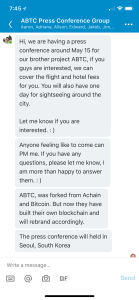 The ICO market is hot right now and there is money flowing from hand to hand in a torrent. One litigious company I spoke to took $10,000 to write a white paper and then returned a two page squib, refusing ultimately to refund a founder’s money. Another company, below, is sponsoring an all-inclusive trip to Seoul for a press conference. Other companies take $400,000 or more to manage your ICO, offering PR and services look to have been cobbled together in a rush yet promise millions in returns.