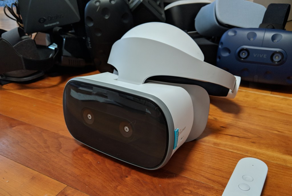 The build of the headset is pretty solid. Bulkiness and a lack of sexiness are foregone conclusions for VR tech in general right now, and yes, this rig also has those issues. While the rigid PSVR-like visor head strap is certainly very comfortable, it also makes the headset a bit difficult to transport, which is arguably pretty essential to a standalone VR headset. I wish there was integrated audio, but the headset does include some little earbuds.