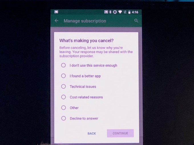 As the company explained during a breakout session at I/O, consumers are often hesitant to sign up for subscription services because they’re concerned it will be too much of a hassle to cancel — they feel trapped.