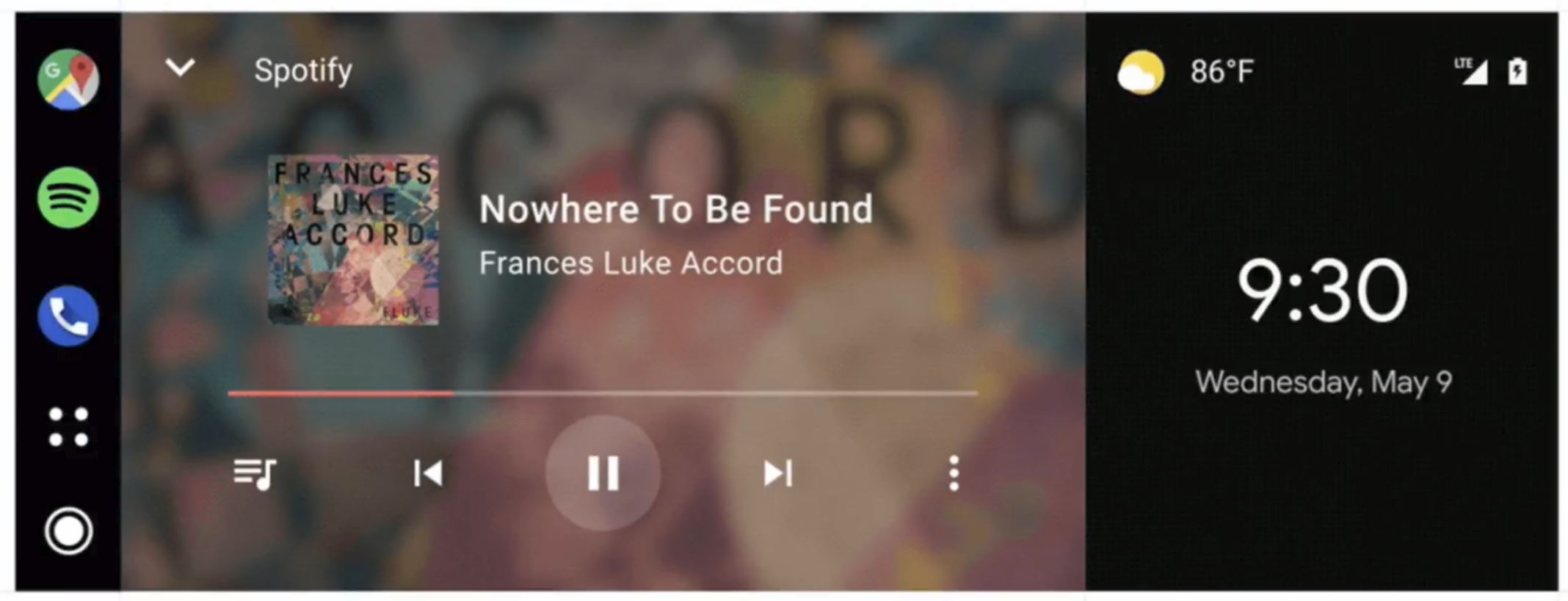 Unsurprisingly, the team is now looking at how it can evolve the Android Auto UI to better support these different screens. As the team showed in today’s session, that could mean using a wide-screen display in the car to show both the Google Maps interface and a media player side-by-side.