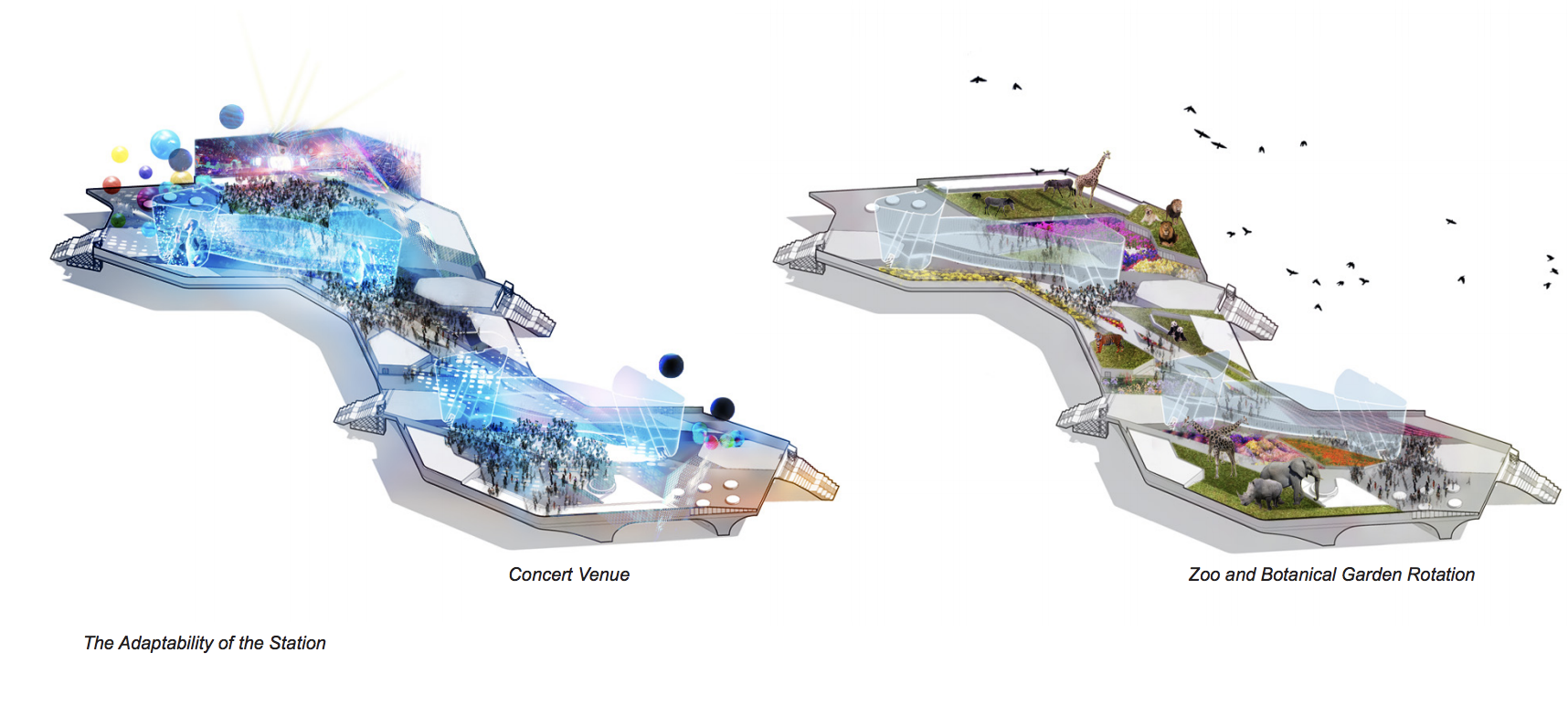 Pickard Chilton and Arup took a more vertical approach with their design for efficiency purposes. This design would enable 180 landings and takeoffs per hour, per module.
