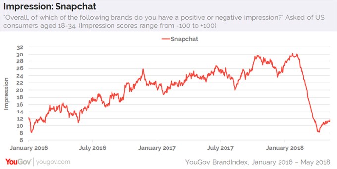 Snap screwed it all up jumbling messages and Stories, banishing creators to Discover and wrecking auto-advance. Prideful of his gut instincts, Snap CEO Evan Spiegel refused to listen to the awful user reviews and declining usage. Now a YouGov study shows a 73 percent drop in user sentiment toward Snapchat, the app’s user count shrank in March and its share price is way down.