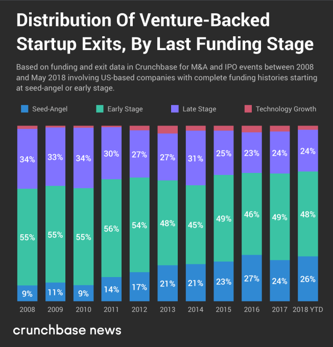 There are certainly other factors besides the influx of seed and early-stage ventures into the mix of exits, but sussing those out will require further investigation.