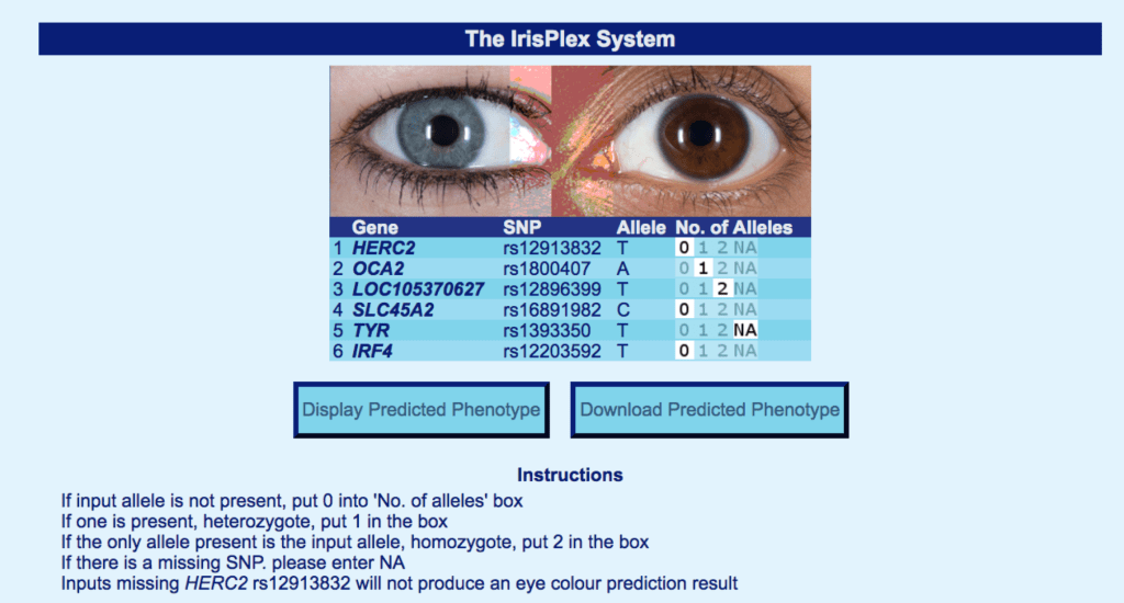 A new tool by researchers at the School of Science at IUPUI and Erasmus MC University Medical Center Rotterdam in the Netherlands can predict your hair, skin, and eye color from your DNA data. The system, which is essentially a web app that can accept DNA sequences, compares known color phenotypes to known data and tells you the probabilities of each color.