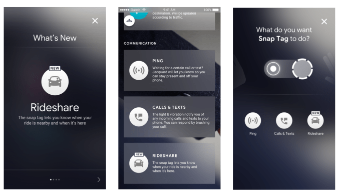 To use the new feature, jacket owners connect Lyft and/or Uber in the companion mobile app, and assign the “rideshare” ability to the snap tag on the cuff. The jacket will then notify you when your ride is three minutes away and again when it has arrived. When users receive the notification, they can brush in from their jacket to hear more details about their ride.