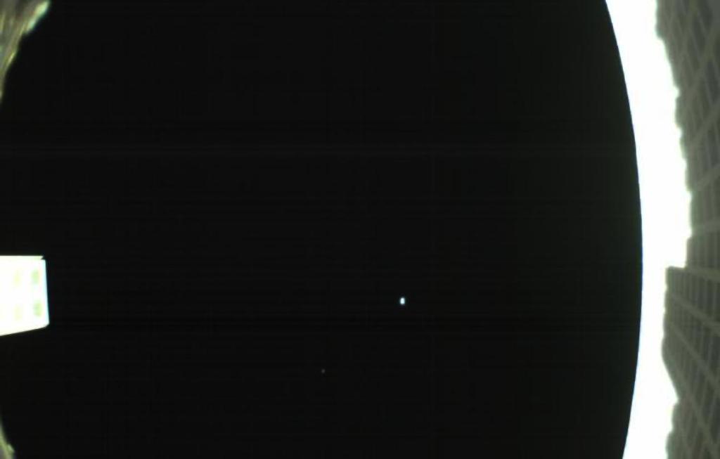 A few days after launch MarCO-A and B were about a million kilometers (621,371 miles) from Earth, and it was time to unfold its high-gain antenna. A fisheye camera attached to the chassis had an eye on the process and took a picture to send back home to inform mission control that all was well.