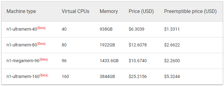 With these new machines, Google now matches the top-end memory-optimized options on the AWS platform, though Google offers slightly more compute power thanks to a higher number of cores and newer processors.
