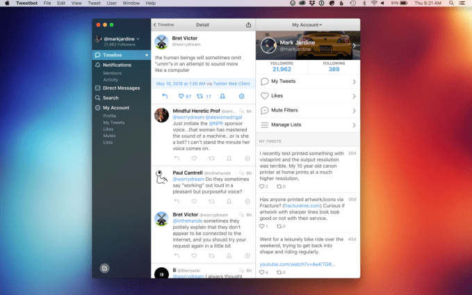 One of the more popular desktop clients for Twitter, Tweetbot, is today launching a completely rewritten version of its software, Tweetbot 3 for Mac. The updated app introduces new features like timeline filters, a new notifications view, an upgraded navigation sidebar, and more. At the same time, the company is also detailing what impact to its app could occur with regard to the API changes Twitter announced.