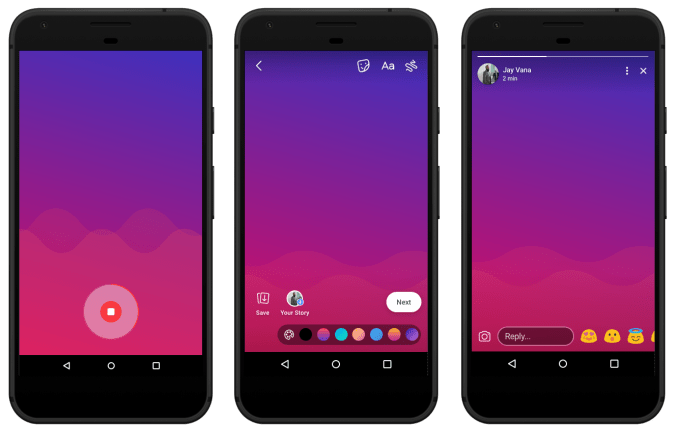 Today, Facebook will start rolling out three big Stories features in India, which will come to the rest of the world shortly after. First, to lure posts from users who don’t want to type or have a non-native language keyboard, as well as micropodcasters, Facebook Stories will allow audio posts combining a voice message with a colored background or photo.