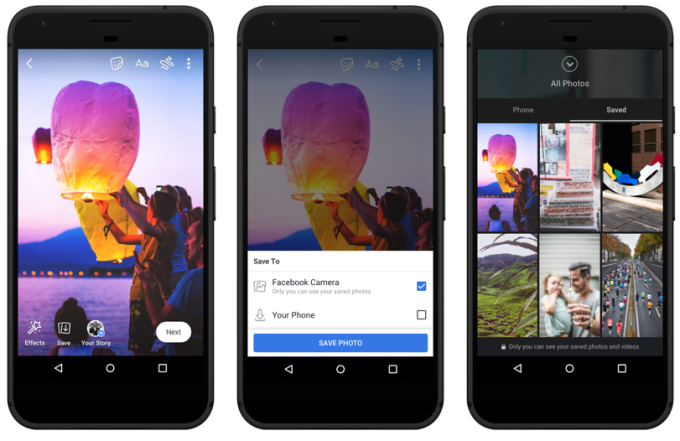 The new Save to Facebook Camera feature creates a private tab in the Stories creation interface where you can access and post the imagery you’ve stored, and you’ll also find a Saved tab in your profile’s Photos section. Unlike Facebook’s discontinued Photo Sync feature, here you’ll choose to save imagery one at a time. It will be a big help to users lacking free space on their phone, as Facebook says many people around the world have to delete a photo just to save a new one.