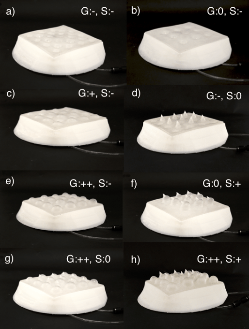 Cornell researchers have made a little robot that can express its emotions through touch, sending out little spikes when it’s scared or even getting goosebumps to express delight or excitement. The prototype, a cute smiling creature with rubber skin, is designed to test touch as an I/O system for robotic projects.