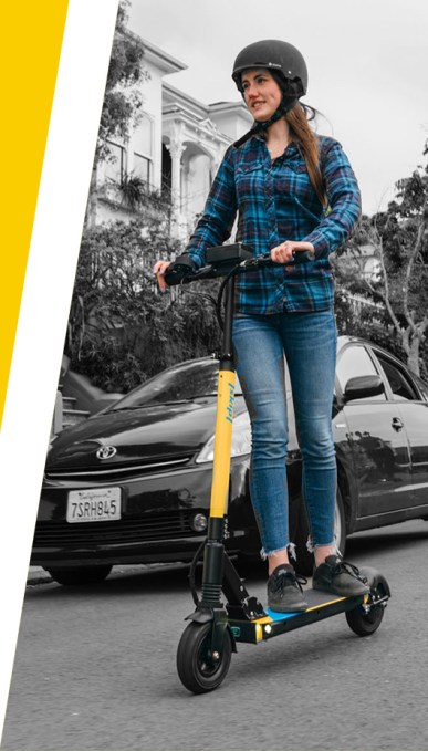 The durable hardware is meant to need less service so you’re less likely to rent a broken, or worse, half-broken-but-I’m-late-so-I’ll-ride-it-anyway scooter. You can adjust the handlebar height, they go up to 18mph and dual-suspension flattens road bumps.