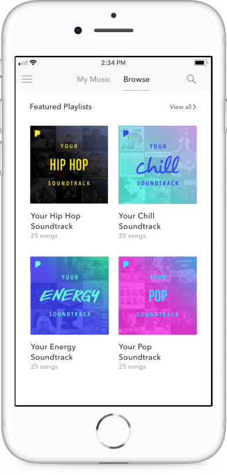 At launch, the service was capable of offering over 60 personalized playlists, like those for “focus,” “energy,” “rainy days” or genre-based ones, like “pop” or “hip hop.” But users won’t necessarily get all 60 – they’ll only get those that Pandora thinks makes sense for the individual based on the user’s listening habits.