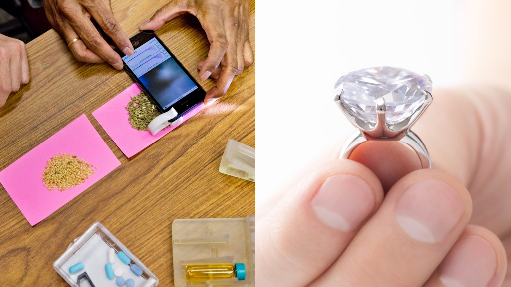 Essentially you stick a little thing on your phone’s camera, open the app, and put the sensor against what you’re trying to verify, be it a generic antidepressant or an ore sample. By combining microscopy, spectroscopy, and a little bit of AI, the Verifier compares what it sees to a known version of the item and tells you whether they’re the same.