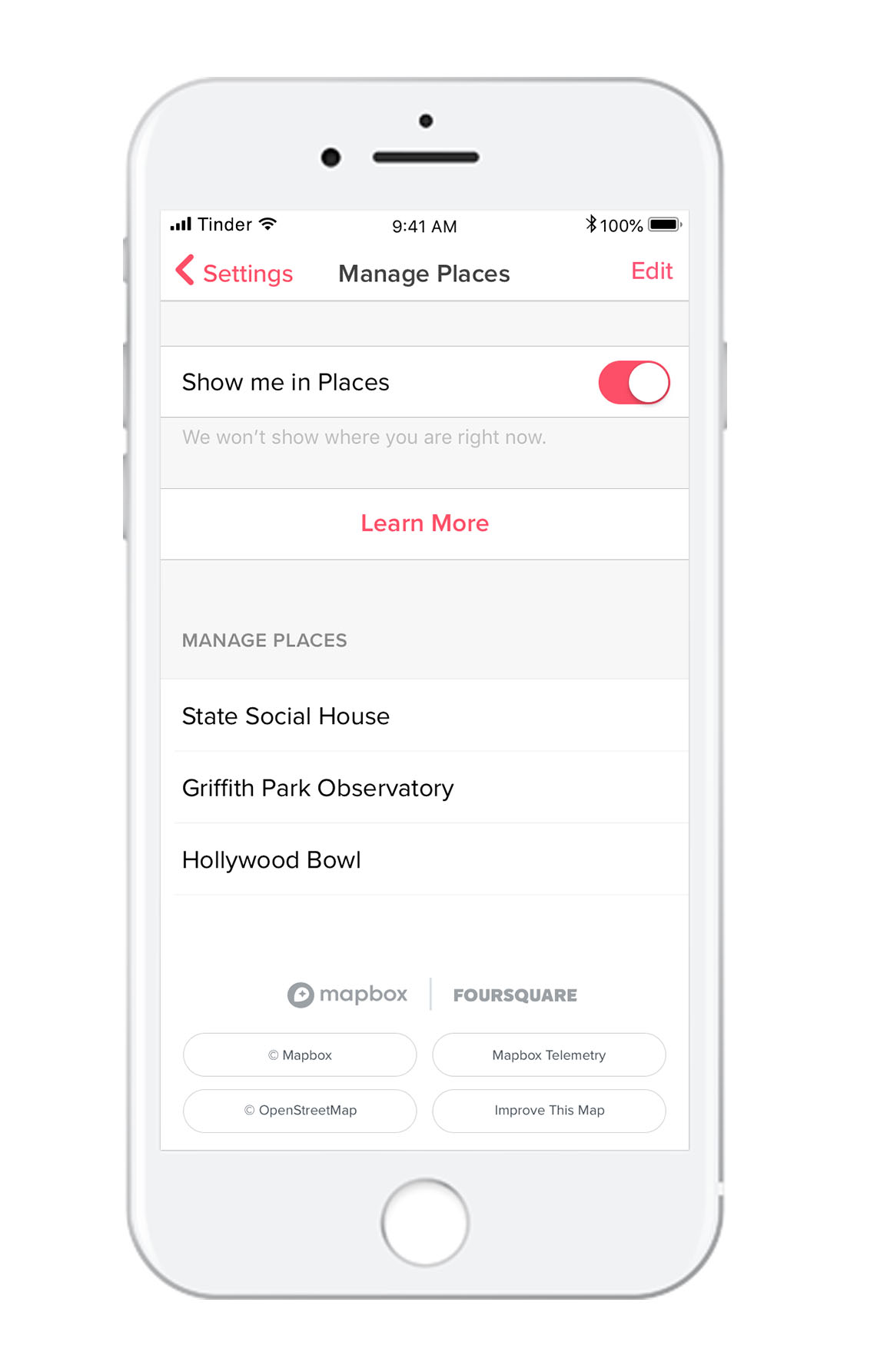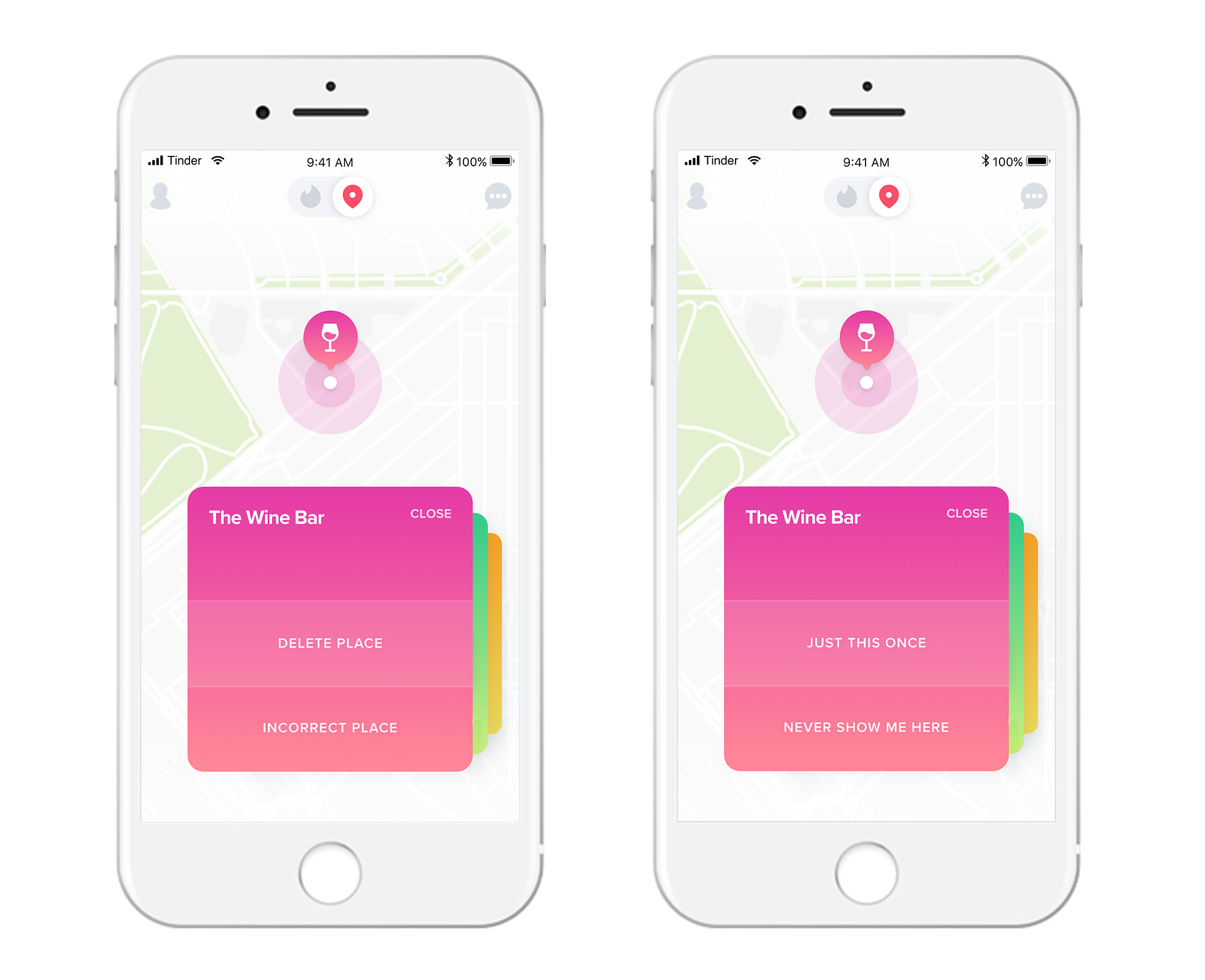 You also can tell Tinder to never show a particular place again after its first appearance. So, for example, if you never want to meet people at your gym when you’re all hot and sweaty, you can disable that place from ever appearing.