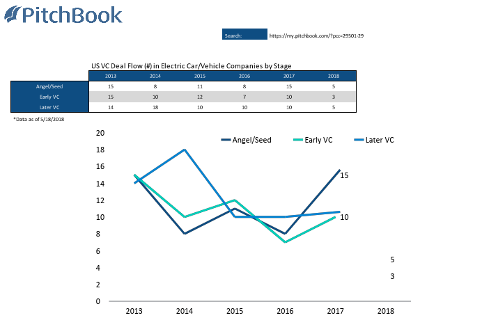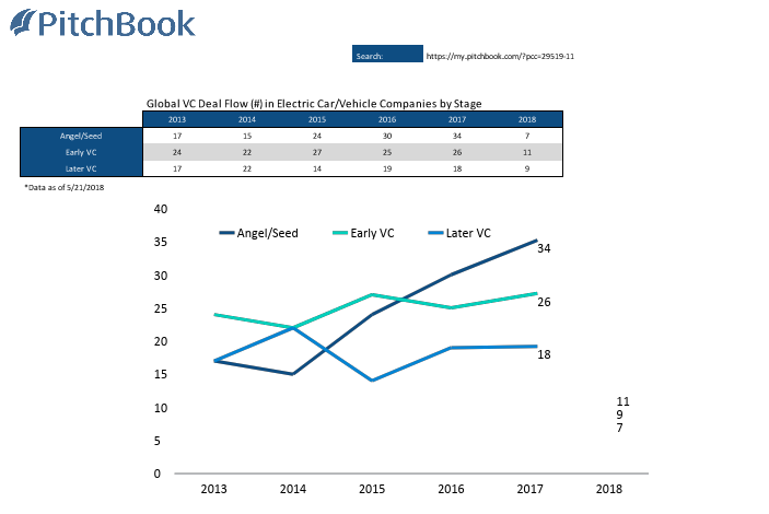 Given those numbers, it’s no wonder that investments into electric vehicle companies and the enabling technologies for them keep climbing — and most of the cash commitments are being made in newly formed companies. PitchBook data indicates that early-stage deals are on the rise, with 15 investments into startup electric vehicle companies in 2017. (It’s important to note that PitchBook data, and the work of other market intelligence firms, is somewhat fuzzy and imprecise.)